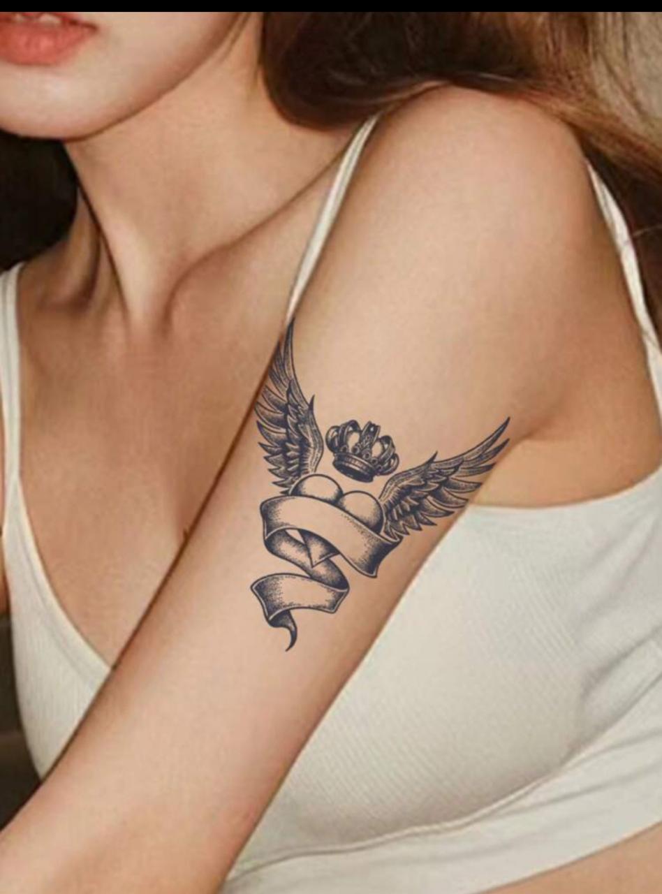 1pc Wings Heart Crown Temporary Tattoo – Lasts For (1-2 Weeks)
