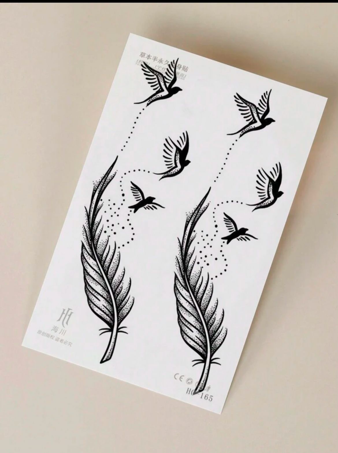 Tattoo Sticker With Abstract Feather Bird Design Lasting For