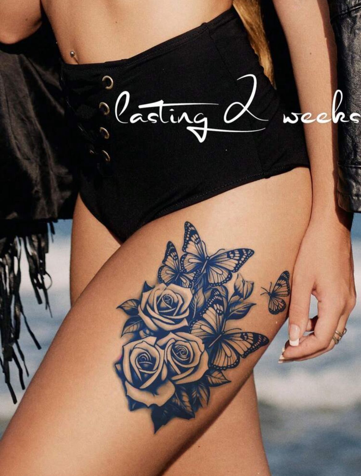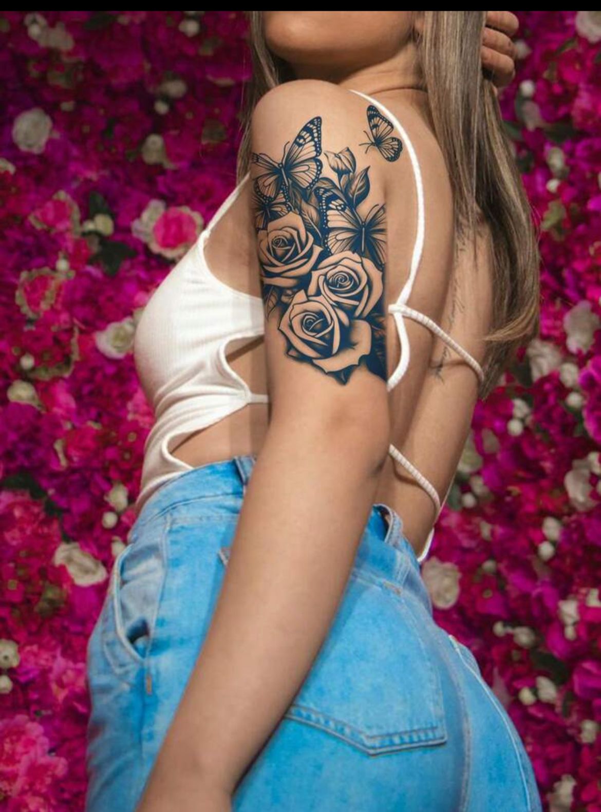 Herbal Juice Semi-Permanent Tattoo Sticker With Butterfly & Floral Y2K Inspired Design, 7-14 Days Long Lasting, Non-Fading & Non-Reflective, Suitable For Large Areas Such As Arms, Chest, Abdomen And Back, 1 Sheet